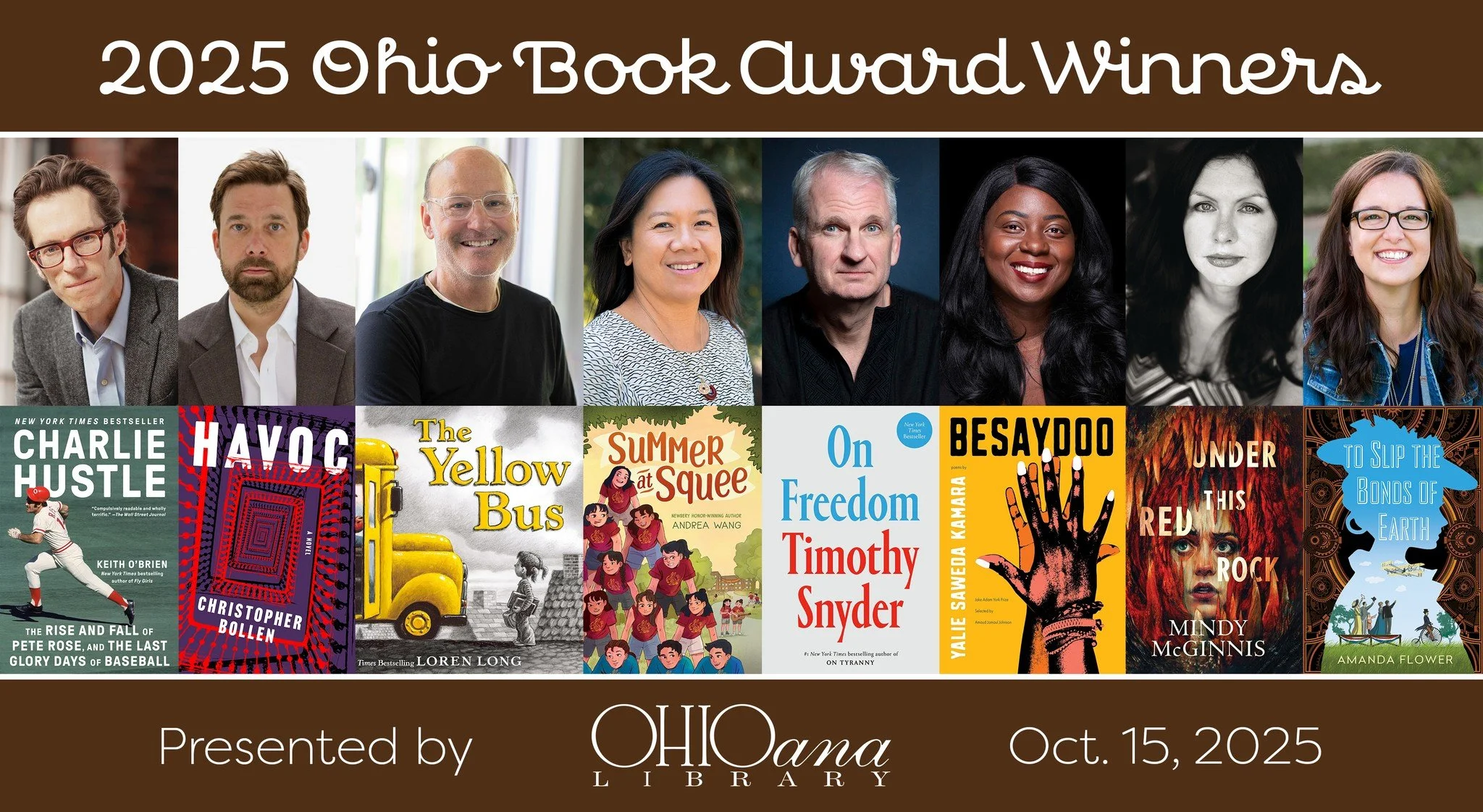 The Ohio Book Awards will take place at the Ohio Statehouse on Wednesday evening, October 15, 2025. Mark your calendars & grab tickets here.